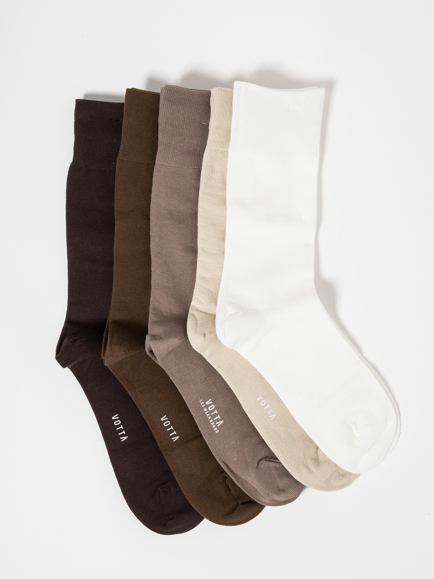 The Solovière x Votta Semainier brings you a meticulously curated pack of five pairs of mid-high cotton socks in neutral solid colors. Ranging from crisp white to warm beige and rich brown, each pair complements a variety of outfits with effortless sophistication. Designed for both comfort and style, these versatile socks are perfect for everyday wear, adding a touch of understated elegance to any ensemble.