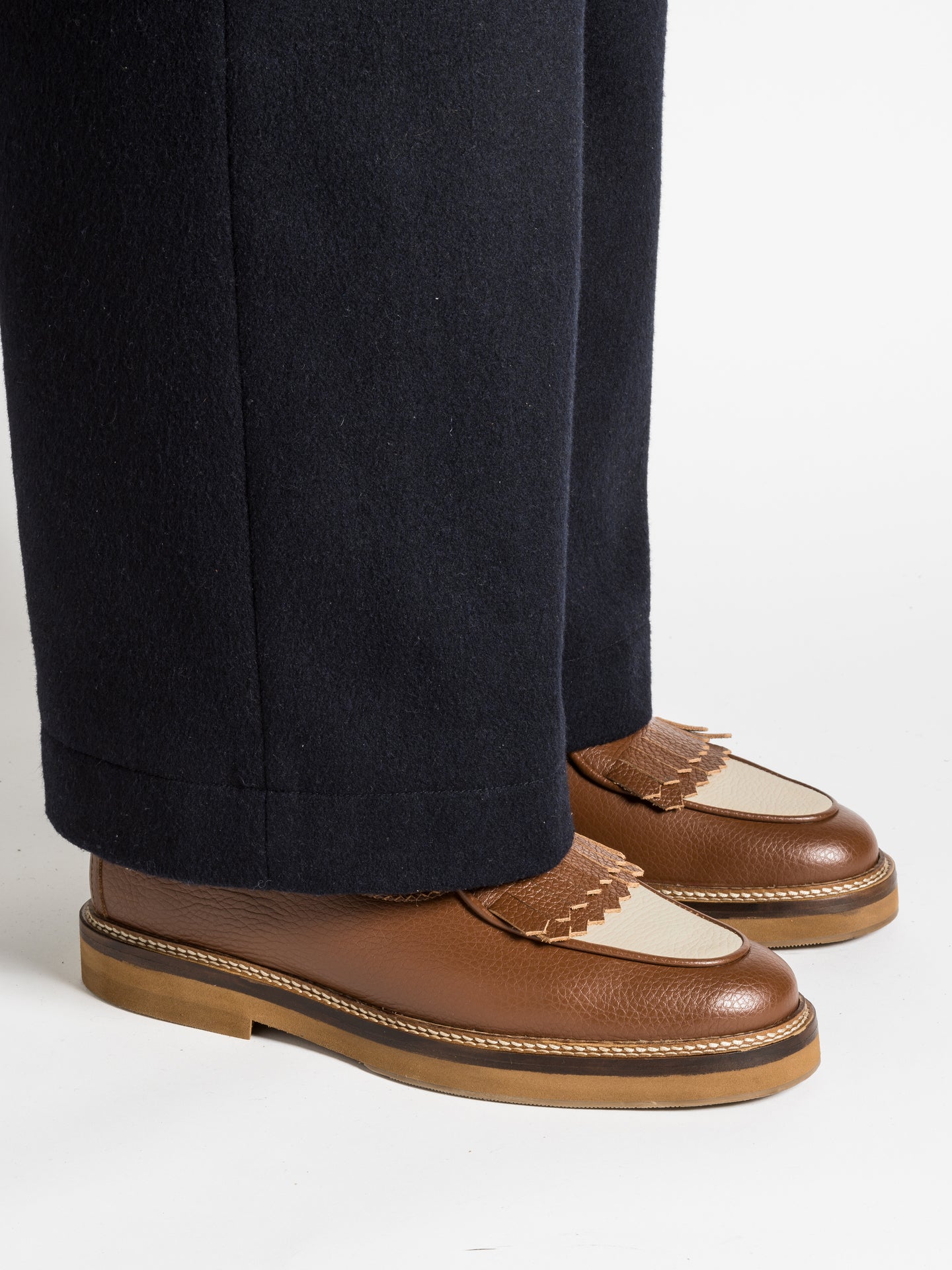 — Brown & cream grained calf leather upper