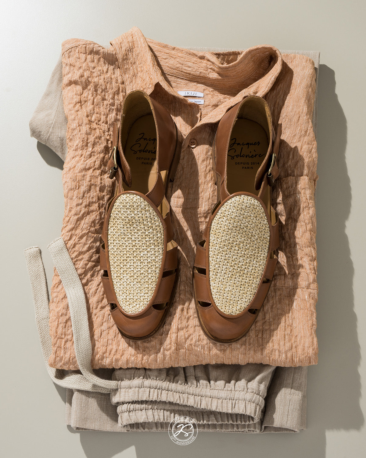 Regular price €236,00Jacques Solovière's Fisherman sandals blend the rustic charm of natural woven raffia fabric with the timeless elegance of tan leather. Crafted with meticulous attention to detail, these sandals feature a design inspired by our signature Lex loafer. The Franck sandal redefines the codes of Fisherman sandals, featuring a bi-material construction that seamlessly combines the durability of leather with the breathable comfort of raffia. The tan leather adds a touch of refinement, while the woven raffia fabric infuses a laid-back, summery vibe. Perfect for both casual outings and more dressed-up occasions, these sandals offer style and versatility for the modern adventurer.